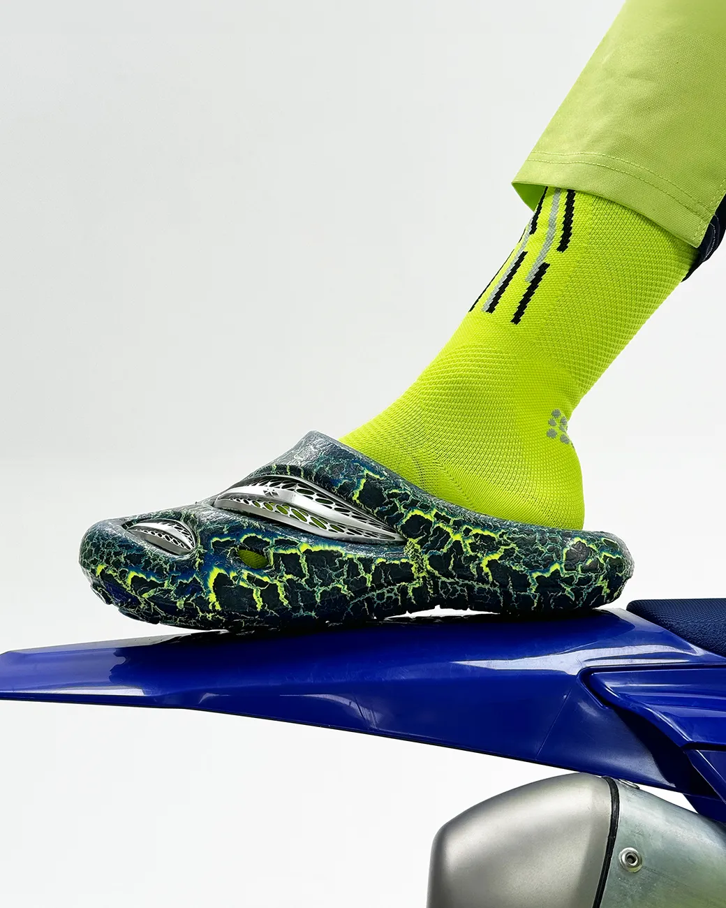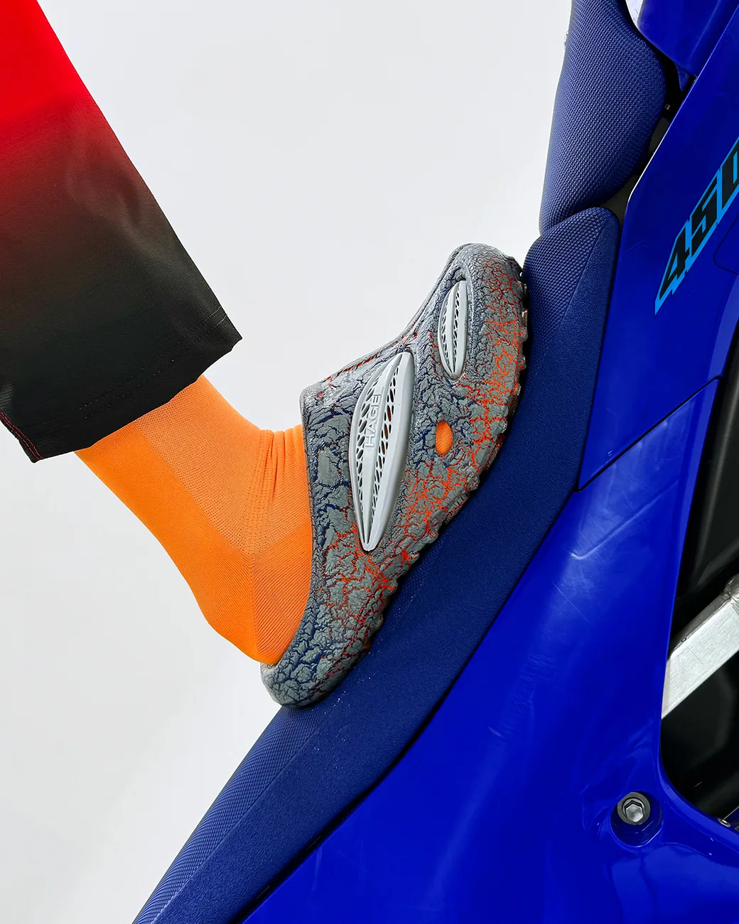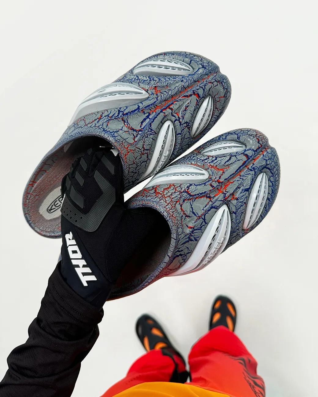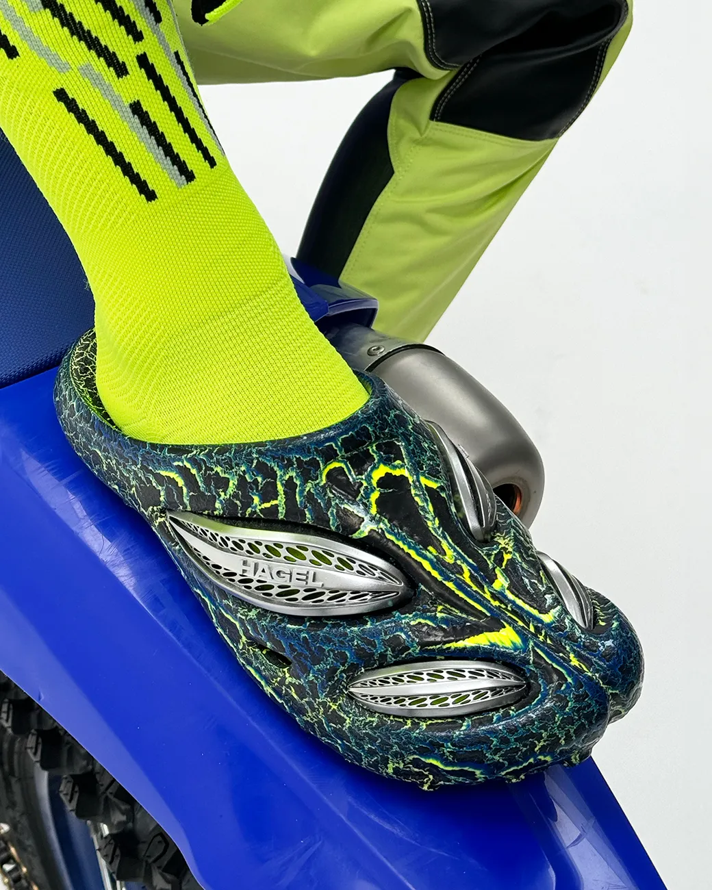 A collaboration between Studio Hagel and artist Koos Breen. Through shared experimentation, the KEEN mule is reworked into a bold, moto-inspired silhouette.