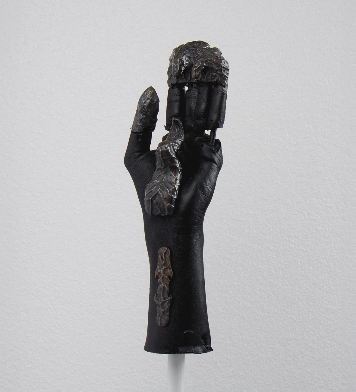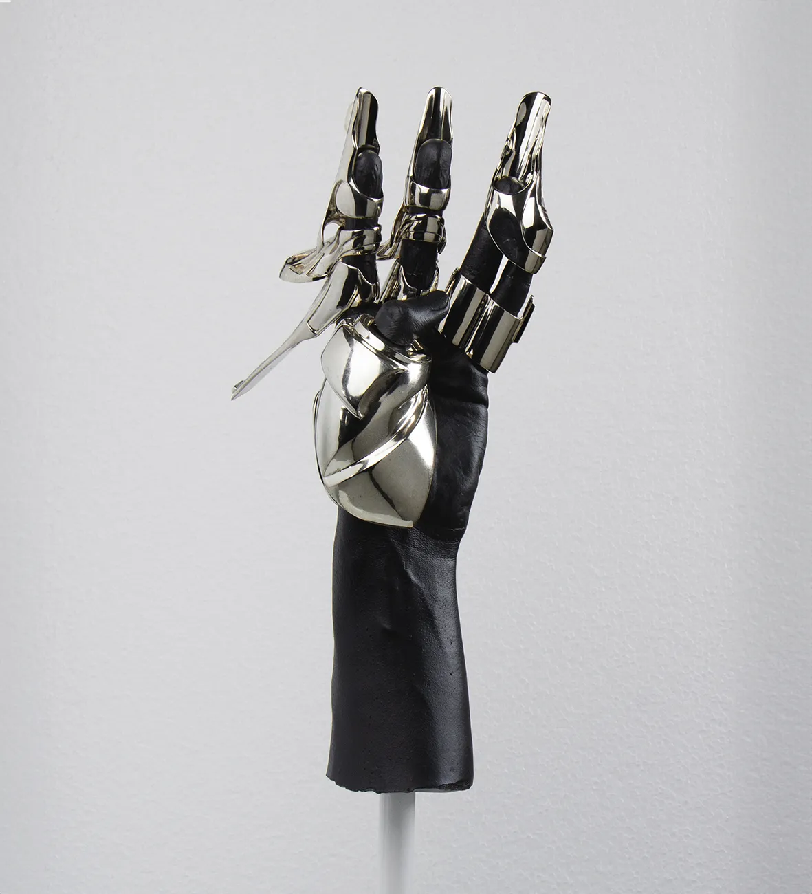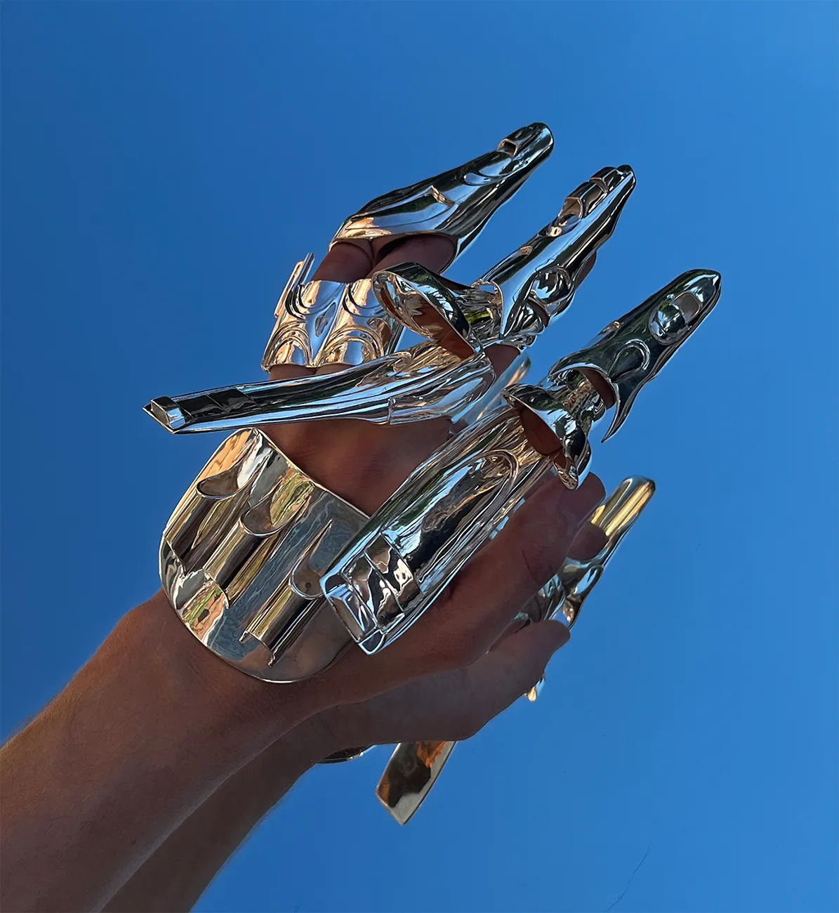 Each object embodies a distinct future scenario. The works reflect on digitalization, climate change, and the transformation of the hand beyond its purely physical form.