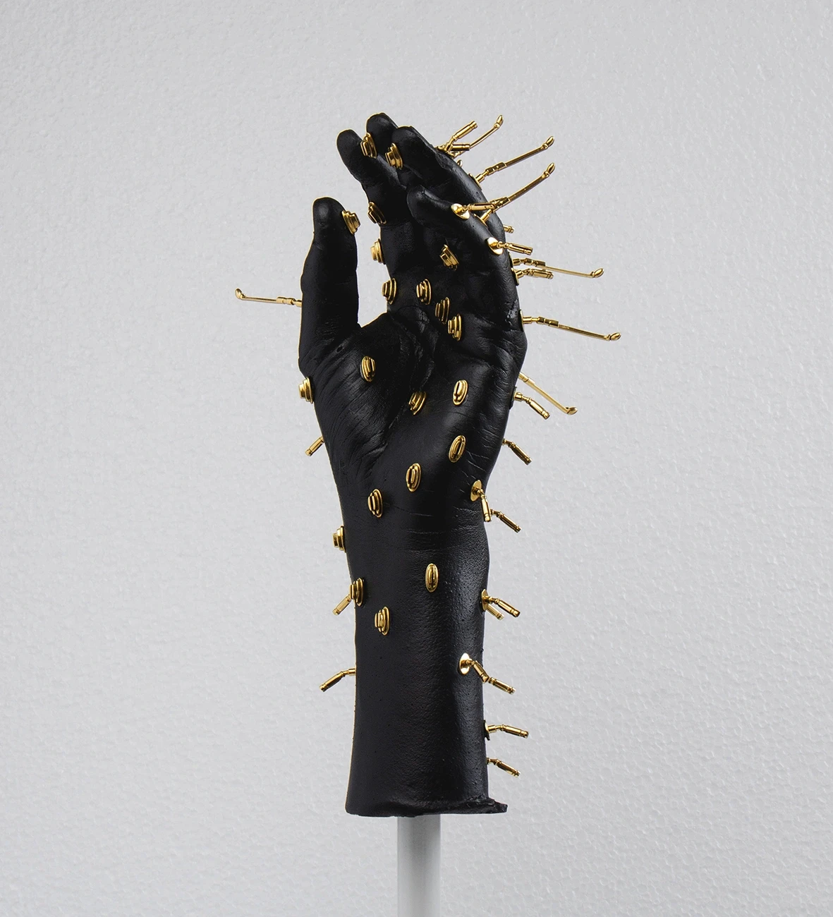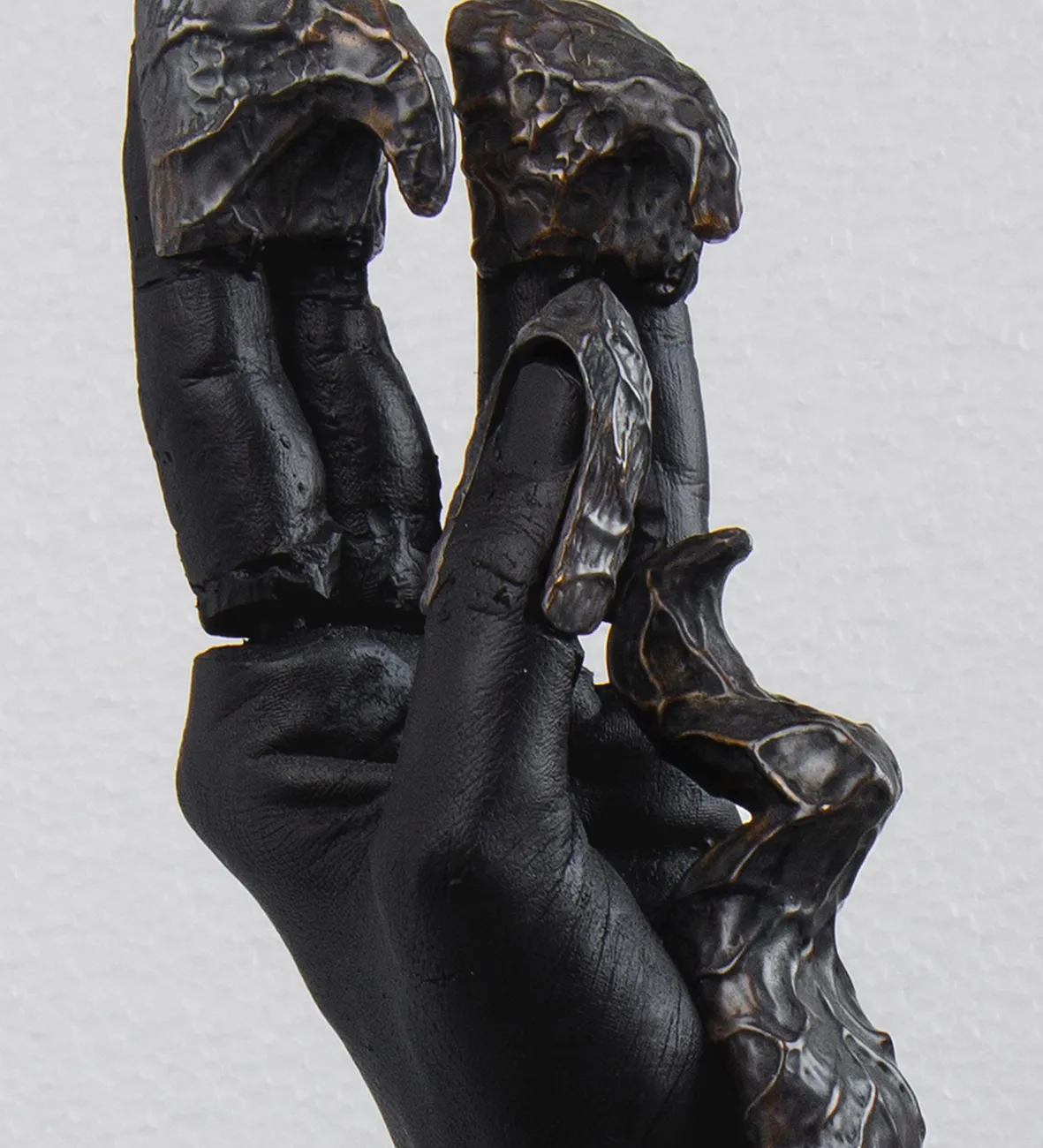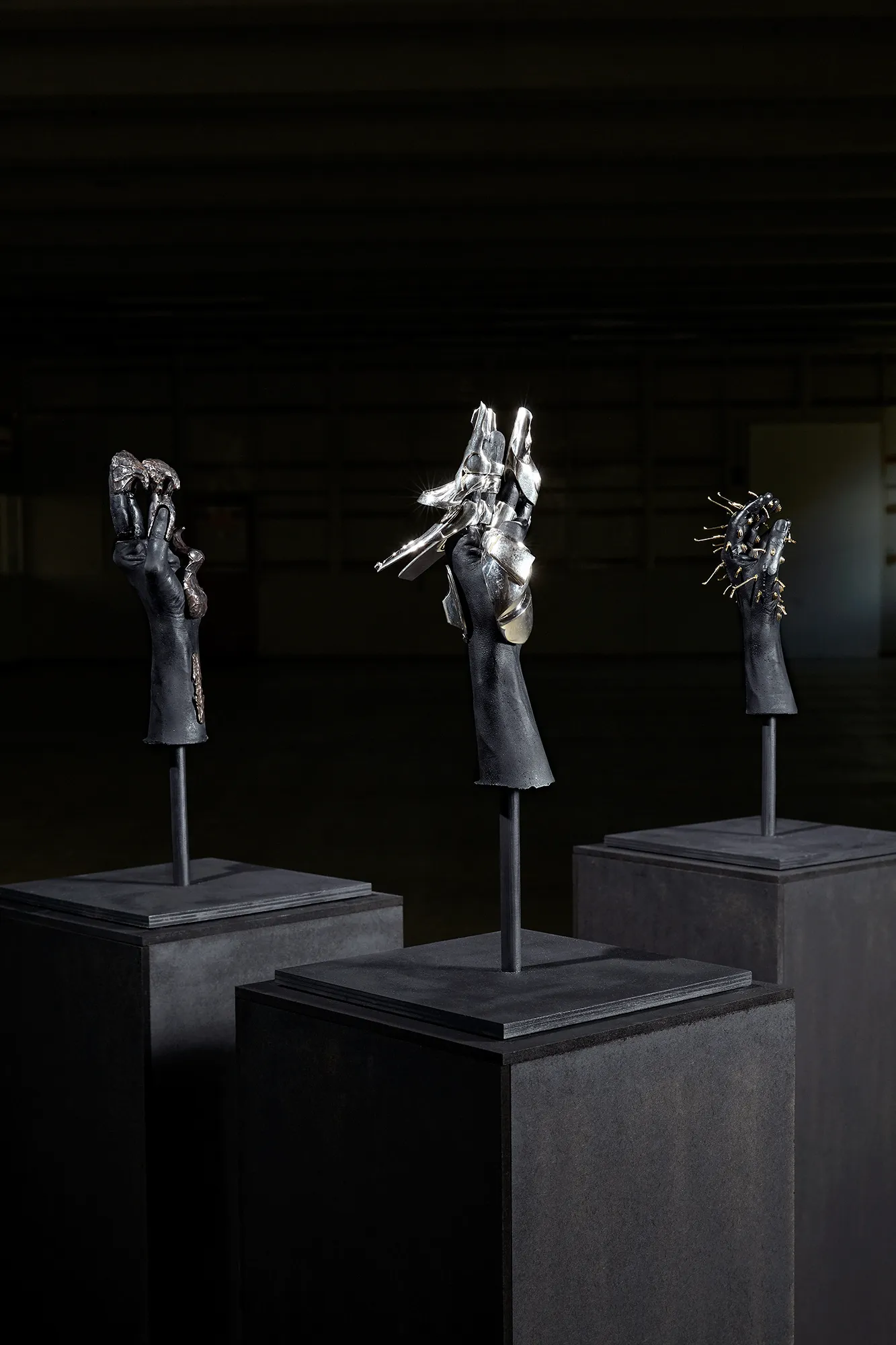 Each object embodies a distinct future scenario. The works reflect on digitalization, climate change, and the transformation of the hand beyond its purely physical form.