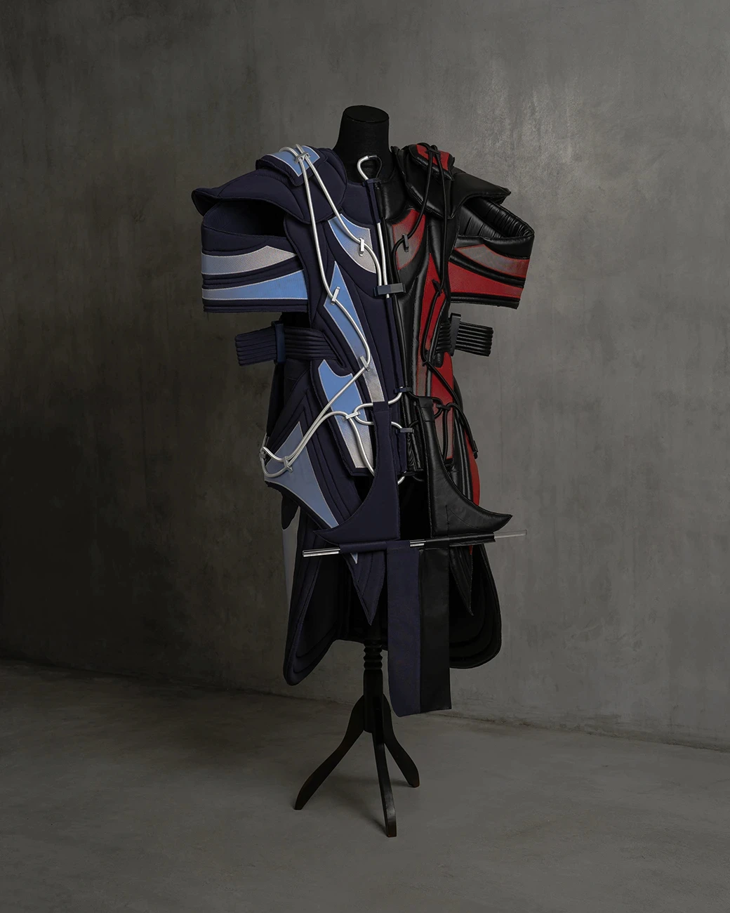 and 3D-printed details. Drawing on the visual language of knight armour and